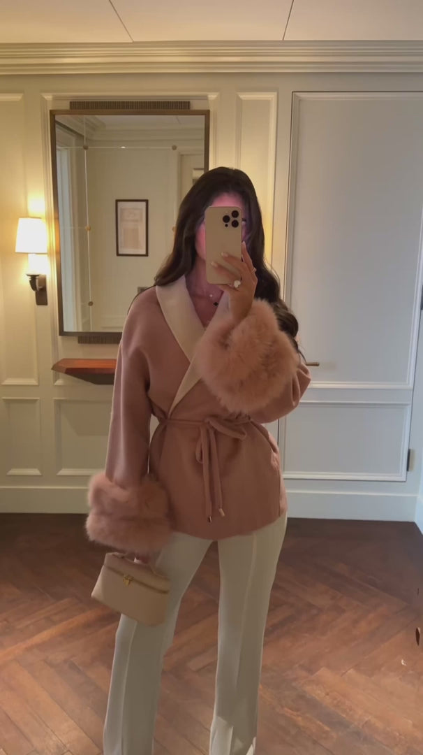 Why wear your heart on your sleeve when you can wear the most luxurious of furs on them! - 100% Wool - Short Coat - Luxury Detachable fox fur cuffs - Detachable Belt - Style your coat in 3 ways depending on your mood with detachable fur cuffs and belt. Please note due to the nature of the fur there is a chance for slight colour differencesSize & Fit Information