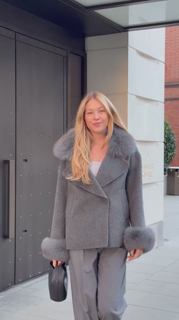 Why wear your heart on your sleeve when you can wear the most luxurious of furs on them! - 100% Wool - Short Coat - Luxury Detachable fox fur cuffs - Detachable Belt - Style your coat in 3 ways depending on your mood with detachable fur cuffs and belt. Please note due to the nature of the fur there is a chance for slight colour differencesSize & Fit Information